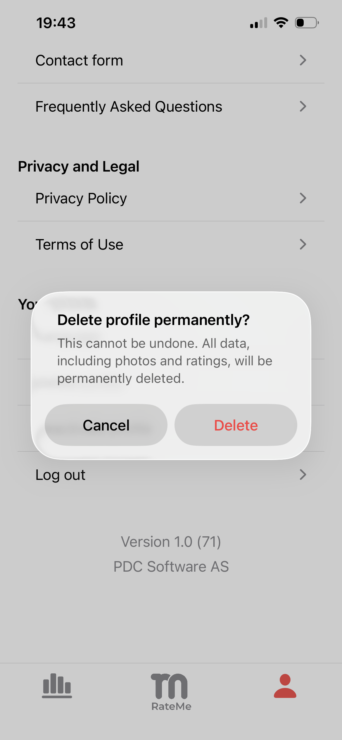 If you wish to delete your user account data, you can do that throughout the application. Simply navigate to the "Profile" and then press the "More" button. You'll find the option to "Delete account" there. Once you confirm this action, your personal data will be permanently deleted, and no information will be retained.